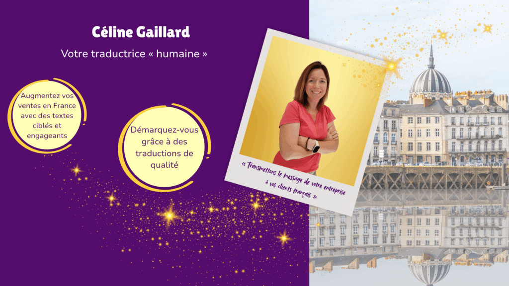 Hello ! Moi, c’est Céline. Je suis traductrice anglais-français et allemand-français freelance depuis 2005. Installée à Haute-Goulaine au sud de Nantes en France, je fais le lien entre deux pays, deux peuples, deux cultures.